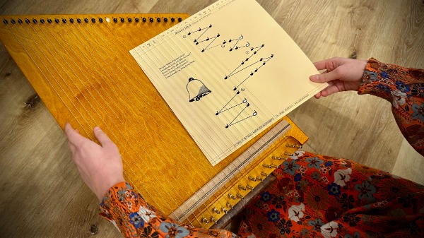Die Zauberharfe ist ein Saiteninstrument, das auf dem Tisch liegend gespielt wird. Sie hat eine rechteckige Form und eine variable Anzahl von Saiten, die über einen Resonanzkörper gespannt sind. Das Besondere: Man legt Notenschablonen unter die Saiten, auf denen die Töne der Reihe nach markiert sind.