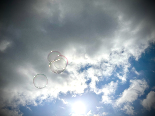 Da kommt eine Seifenblase geflogen. Das Kind streckt die flache Hand nach ihr aus, so dass sie landen kann. Sie schimmert in allen Farben. Das Kind spiegelt sich in ihr. ‚Das bin ich.‘, denkt es und lächelt sich an.