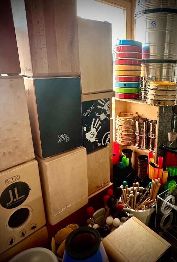 Das improvisierte und freie Gruppenspiel mit Cajon, Djembe und Bongo sowie weiterer Kleinpercussion nutze ich regelmäßig in meinen Musikgruppen.
