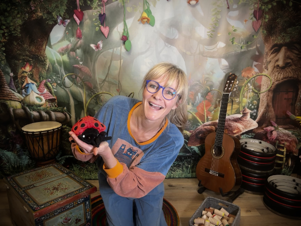 Die Verwandlung von der Raupe zum Schmetterling ist, wie jedes Jahr, mit einem gruppenübergreifenden Staunen verbunden. Meistens geht es schon ziemlich spannend los, wenn direkt nach dem Begrüßungslied eine „fast“ echte, grasgrüne Raupe aus dem Musikkoffer gekrochen kommt.