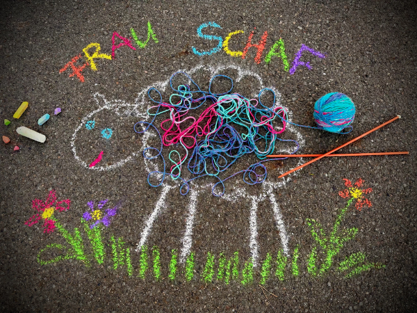 Frau Schaf steht also da, die Vorderpfoten in die Seite gestemmt und bemängelt Schneewittchens Strickwerk: